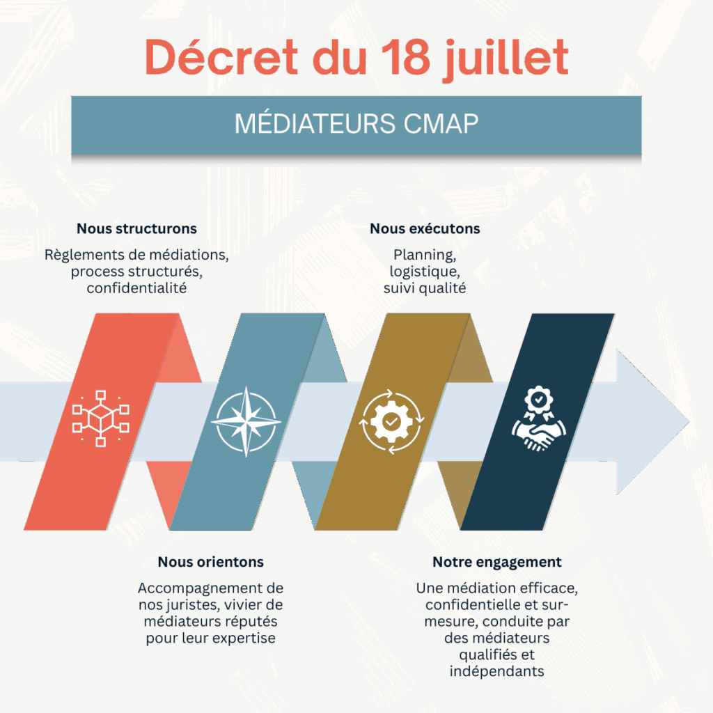 👉 Besoin d’un médiateur adapté à votre litige ? Le CMAP – Médiation et Arbitrage vous oriente et coordonne.