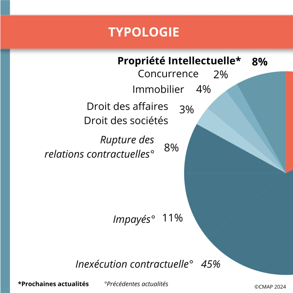 🔹 8 % propriété intellectuelle : Des différends liés aux brevets, marques et autres droits de propriété intellectuelle.